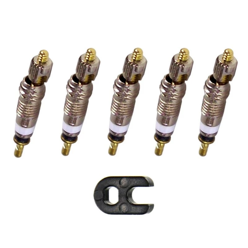 Lot de 5 obus de valve type PRESTA (valve française, valve fine) ;