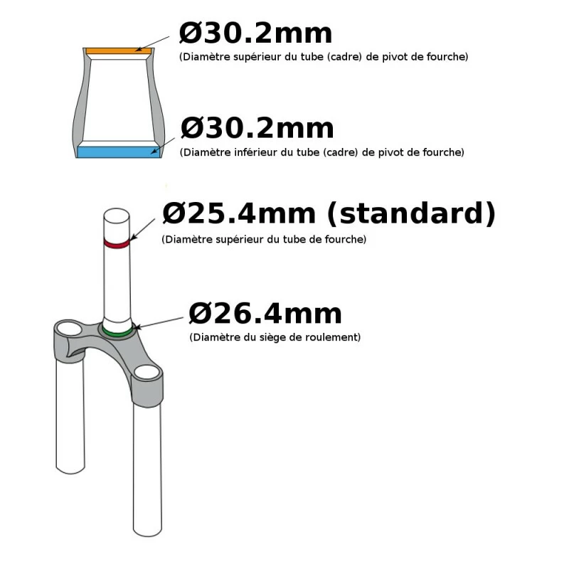 | Diamètre (mm) | 30.2/25.4mm et 30.2/26.4mm |