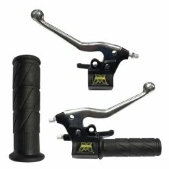 Kit complet poignée et levier, droite (gaz/accélérateur) et gauche (avec commodo électrique) ;